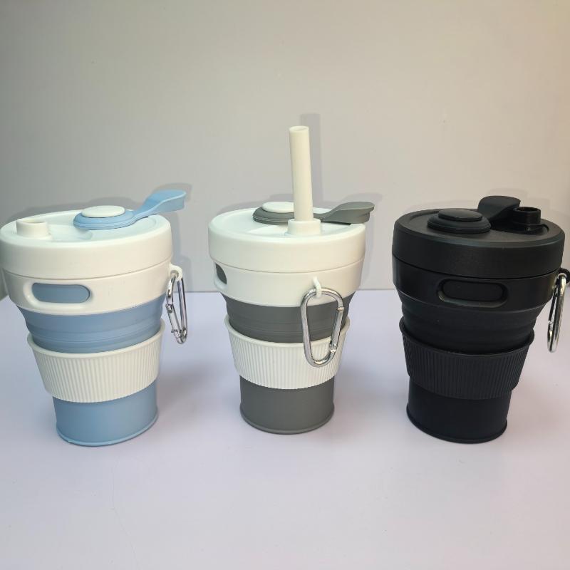 1pc 450ml Foldable Portable Telescopic Water Cup Outdoor Travel Silicone Coffee Cup Straw Cup with Buckle Save Space