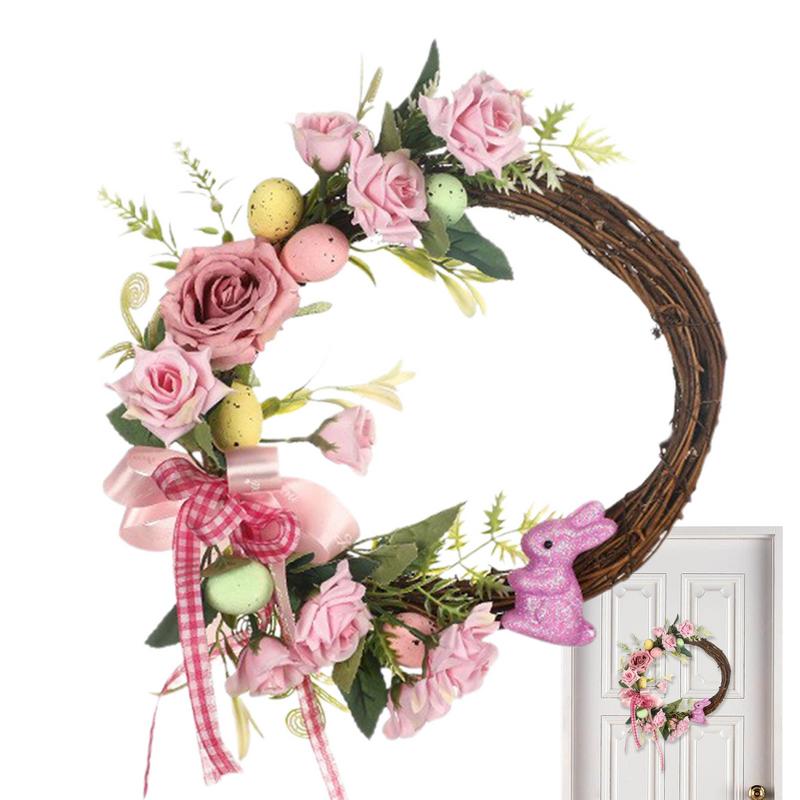 Easter Door Wreath Artificial Flower Easter Wreath Ornament Farmhouse Rustic Wreath Indoor Outdoor Spring Season Decoration For