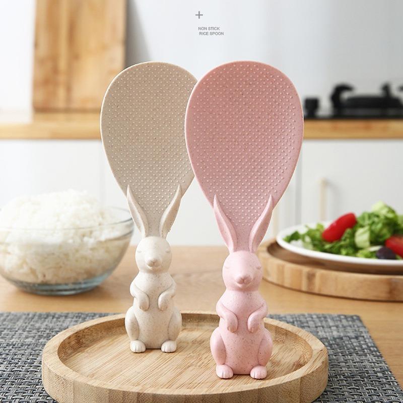 Standing Rabbit Rice Spoon, Standing Non-stick Rice Spoon, Kitchen Wheat Straw Tableware, Cute Little Rabbit Rice Serving Spoon