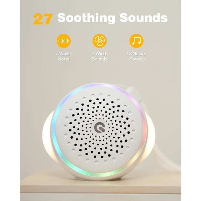 27 Non-Looping Sleep Sounds: FIRPOW white noise machine provides 27 soothing sounds,including 7 White noise(White noise,Pink noise,Brown noise), 7 fan noises( Loud and Soft Fan),13 nature sounds( Rain,Sea waves, Brook,Bird,Train, etc.). This sound machine suitable for relieve stress, relax your mind and create a relaxing sleep environment. Perfect for adults struggling with insomnia, babies needing lullabies