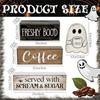 Ghost Sign Wooden Ghost Halloween Tiered Tray Decor Block Decorative Display for Indoor Shelf Home Coffee Bar Party Festive