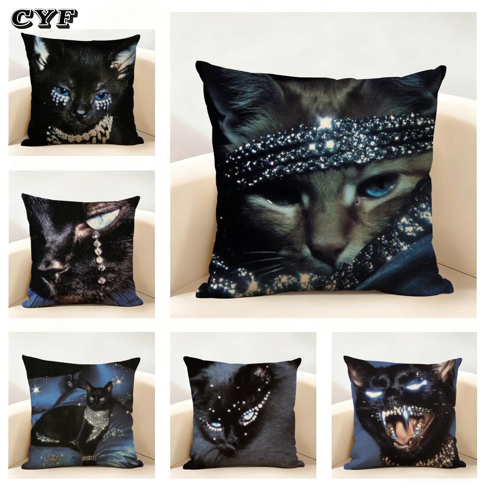 Wild Cats Cushion Cover Household Decoration Linen Sofa Cushion Cover: Skin-Friendly & Breathable with Invisible Zipper