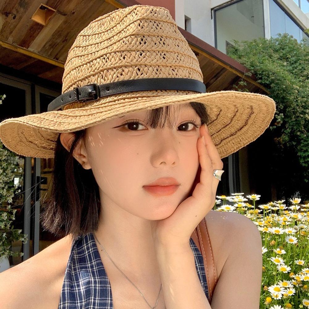 Hollow Hollow Straw Hat Wide Brim Visor Cap Fashion Western Cowboy Hat Travel