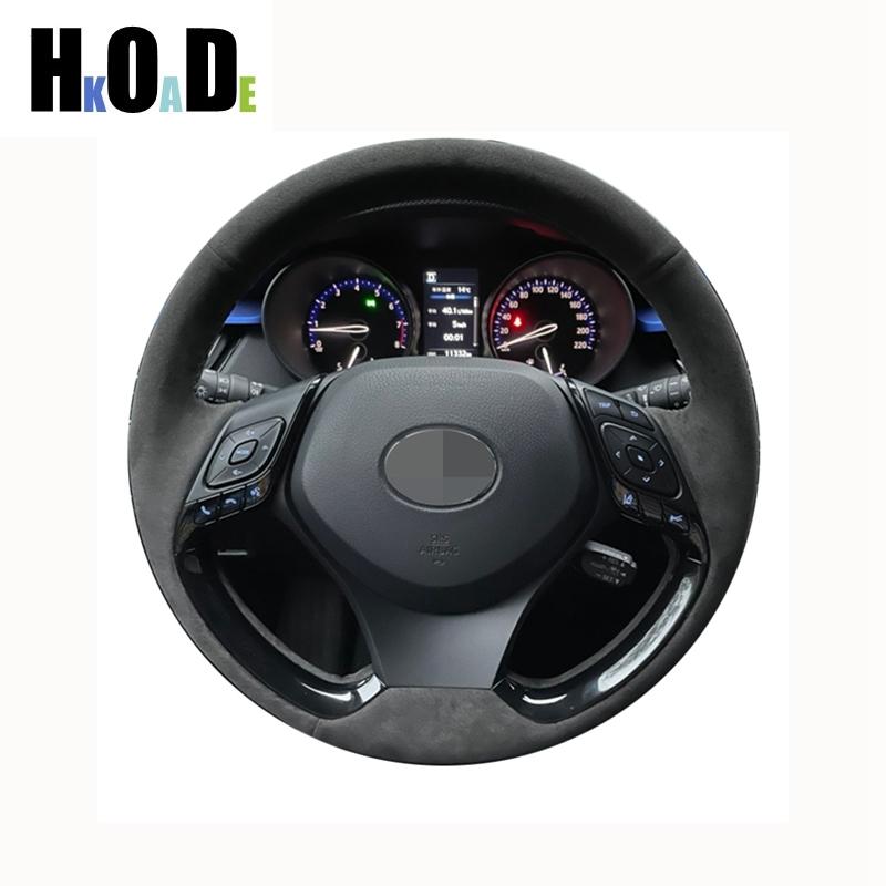 DIY Hand-stitched Black Suede Car Steering Wheel Cover For Toyota C-HR CHR 2016 2017 2018
