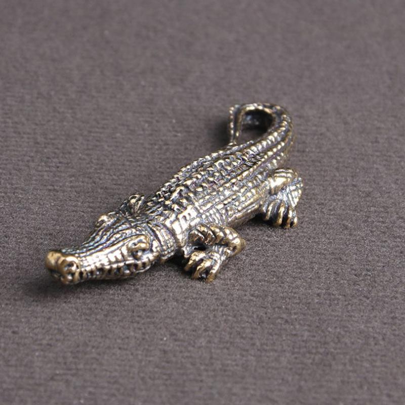 Figuras en miniatura de cocodrilo de bronce antiguo Estatua de caimán en miniatura de latón vintage Adornos de escritorio Decoración de Feng Shui para el hogar Manualidades