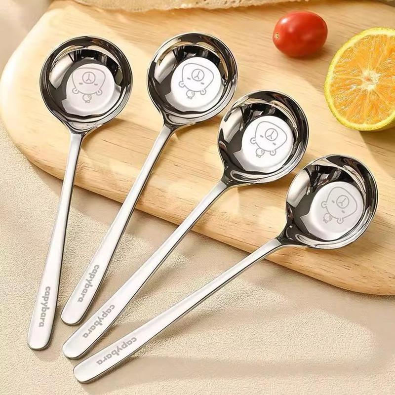 Cartoon Kapybala Stainless Steel Tableware Flat-Bottomed Spoon Chinese-Style Tablespoon For Children Thickened Soup Dinnerware