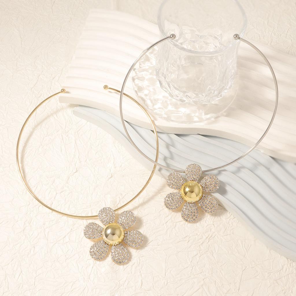 High-end exquisite design, simple and fashionable diamond-encrusted alloy large flower necklace, daily versatile women's collar