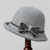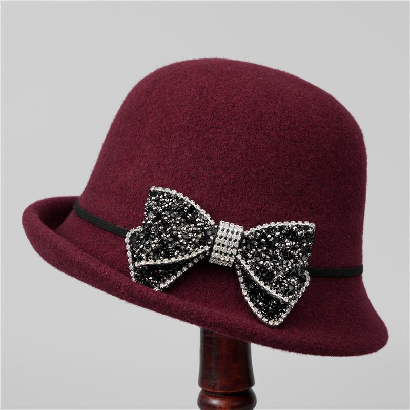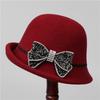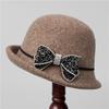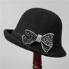 Ji Wool Top Hat Women Rhinestone Bow Socialite Small Brim French Retro Basin Hat Bucket Hat