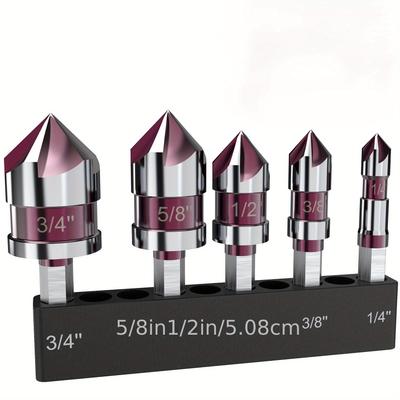 5PCS 1/4 3/8 1/2 5/8 3/4inch Countersunk Bits Multi-Size Deburring Bit Countersink Bits Plastic