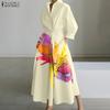 ZANZEA Women Casual Turn Down Collar Long Sleeve Loose Stripe Shirt Dress
