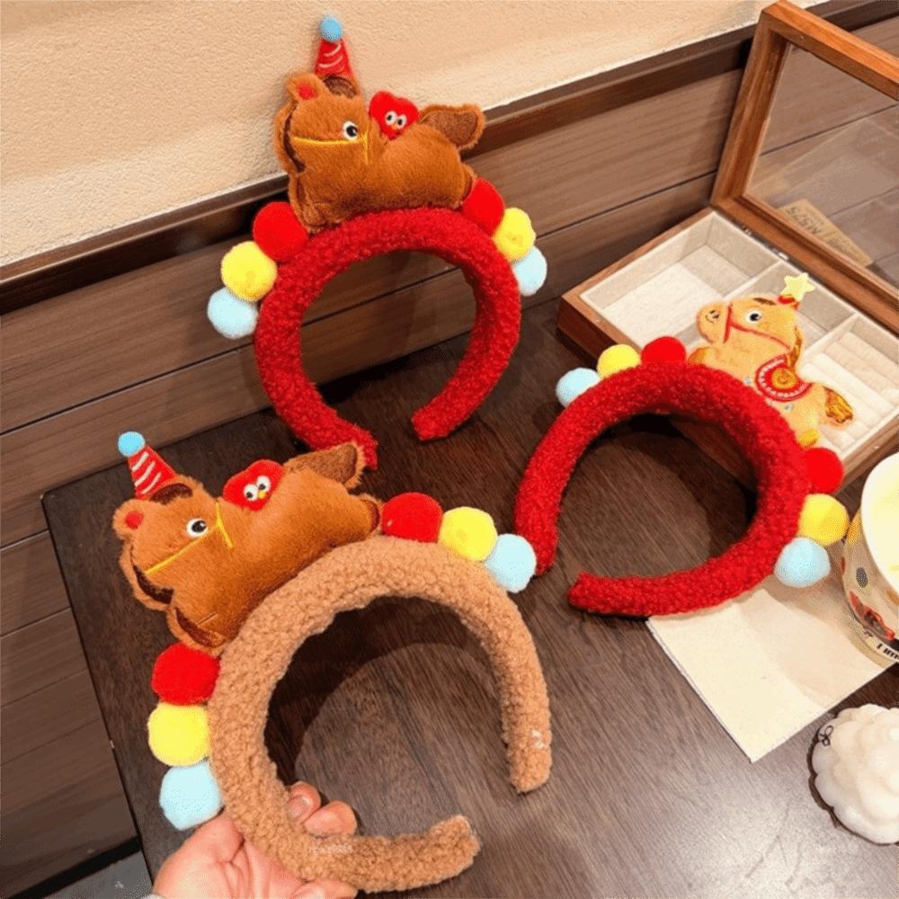 Exquisite Cartoon Horse Hair Hoop Plush New Year Mascot Headband Party Pony Headpiece Festival