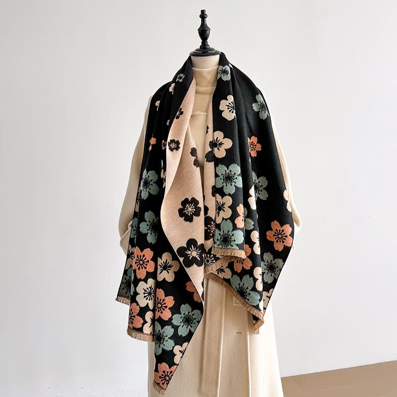 Women's Faux Cashmere Winter Fashion Scarf Vintage Floral Printed With Tassels Soft Warm Shawl Elegant Wrap For Winter Outfits