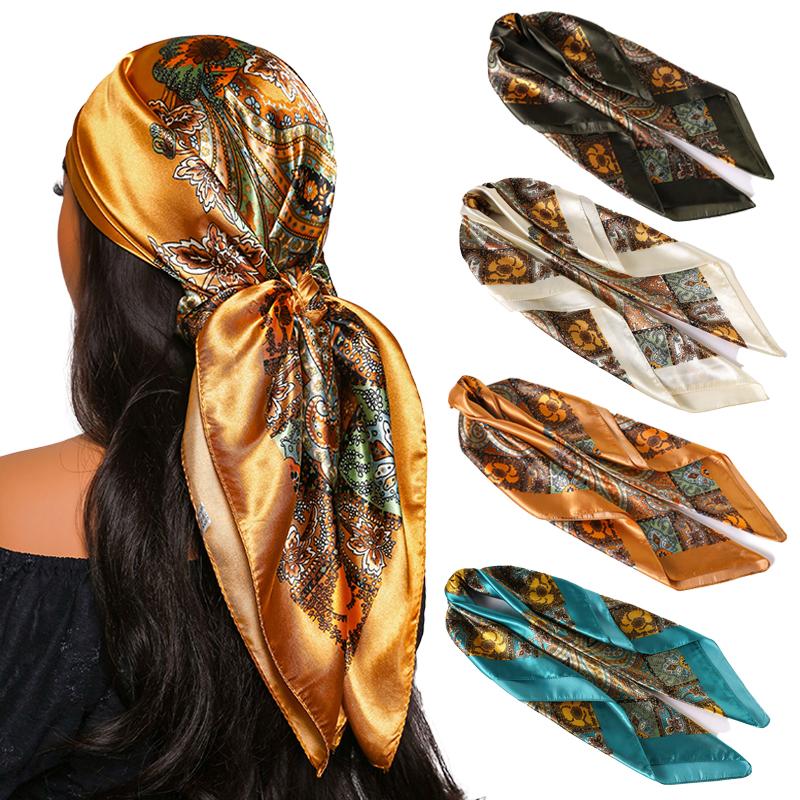 90*90cm Hair Scarf Women Fashion Designer Beautiful Paisley Foulard Soft Satin Shawl Kerchief Square Silk Scarfs Neck Headscarf