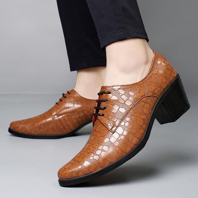 Men High Heels Blue Derby Brown Wedding Dress Dance Shoes Business Elevator Shoes Black Height Increase Tuxedo Shoes Large Size
