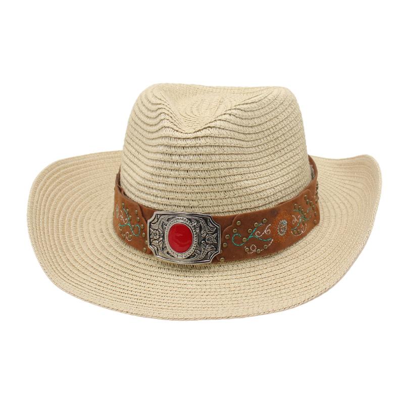 Men'S Spring And Summer Outdoor Travel Sunshade Tibetan Hat Straw Hat Women'S Seaside Vacation Upturned Edge Beach Hat Western Cowboy Hat