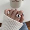 Cold Style Black Onyx Simple Ring Female Open Adjustable Niche Advanced Sense Light Luxury Pair Rings Casual Everyday Dainty Minimalist Ring
