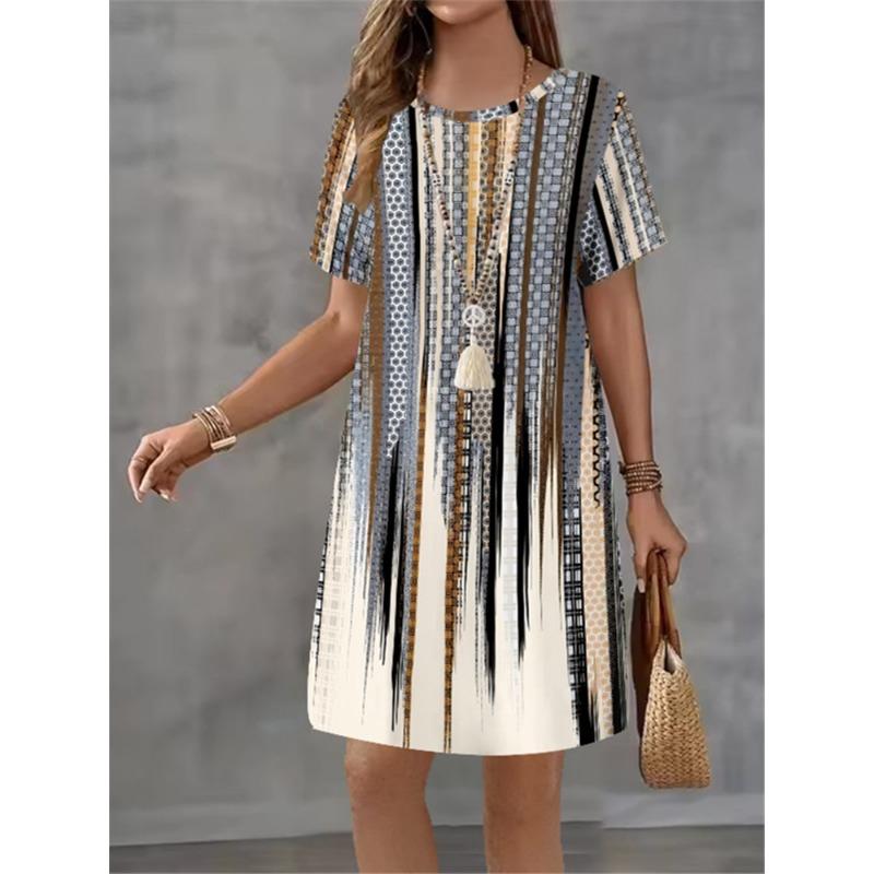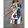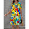 Colorful Geometric Patterns Women Short Dress Summer Fashion 3D Print Loose Mini Dress Casual Short Sleeve Ladies Party Dresses