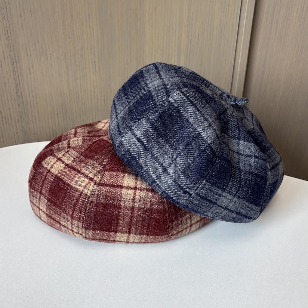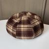 Retro Plaid Octagonal Hat Ladies British Versatile Painter Hat Show Face Small Warm Beret