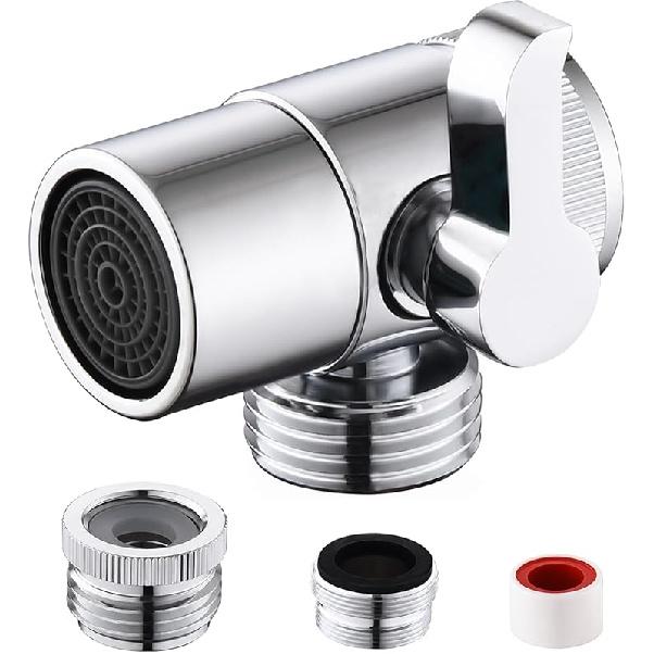 All Brass Faucet Diverter Valve with Aerator,Faucet Diverter Adapter for Sink Faucet Connection Shower Hose/Garden Hose/Portable Washing Machine