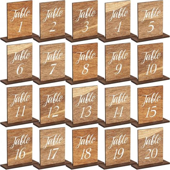 Chunful 20 Pcs Wedding Wooden Table Numbers with Wooden Base Rustic Wedding Centerpieces for Tables Number Sign for Banquet Restaurant Party