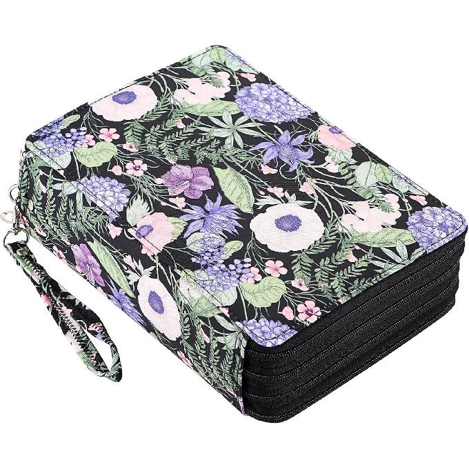 BTSKY Colored Pencil Case- 200 Slots Pencil Holder Pen Bag Large Capacity Pencil Organizer with Handle Strap Handy Colored Pencil Box with Printing