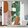 No Hook Shower Curtain with Snap in Liner and Liner Set, Boho Mid Century Green Leaf Shower Curtains for Bathroom Decor 71x74 in