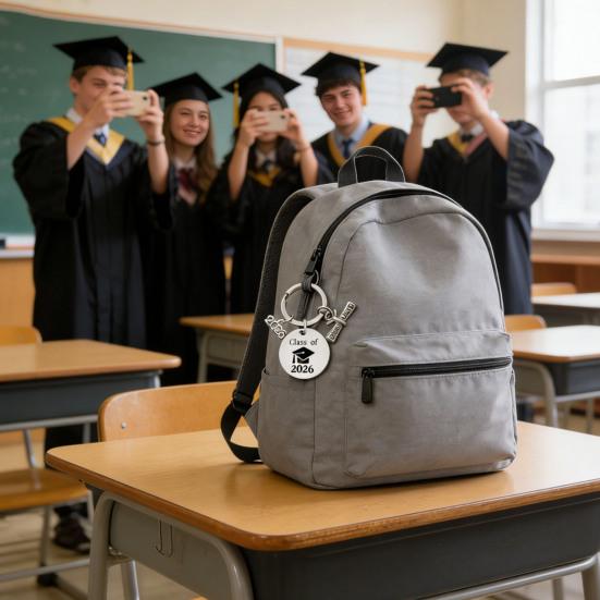 Construcción de acero inoxidable de primera calidad.: Fabricado en acero inoxidable de alta calidad, este colgante para llavero ofrece una durabilidad excepcional y un acabado elegante y pulido.. Resistente al óxido y al deslustre, mantiene su brillo con el tiempo, lo que lo convierte en un recuerdo duradero para la Promoción de 2026.. Su material resistente garantiza un uso diario sin desgaste, perfecto para sujetar las llaves de forma segura mientras simboliza el logro.