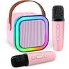 【Wide Compatibility, Plug and Play】Our karaoke machine for kids adults comes with 2 wireless microphones can be connected through bluetooth, USB cable, SD card, USB drive, mobile phone, wired earphones, pad, laptop, desktop computer without music player.Long press the power button on the top of the product for 3 seconds to start use/singing, click to pause, click the sing button to eliminate the original sound and create a accompaniment, use "+" and "-" to adjust the volume.