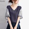 ZANZEA Women Casual Stand Collar 3/4 Sleeve Elegant Loose Blouse
