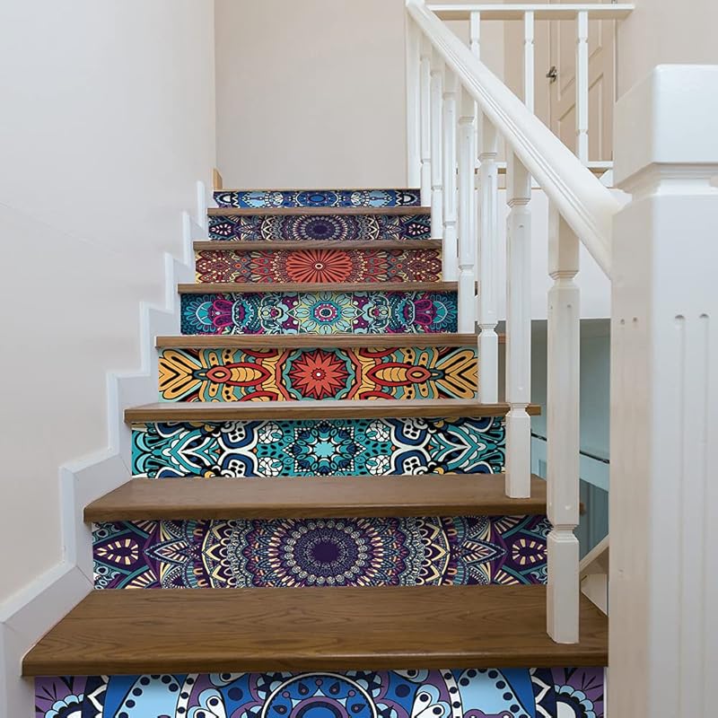 funlife 14 Strips Stair Riser Stickers Peel and Stick, Self Adhesive Vinyl Stair Risers Staircase Murals Decals Sticker Decor for Steps,