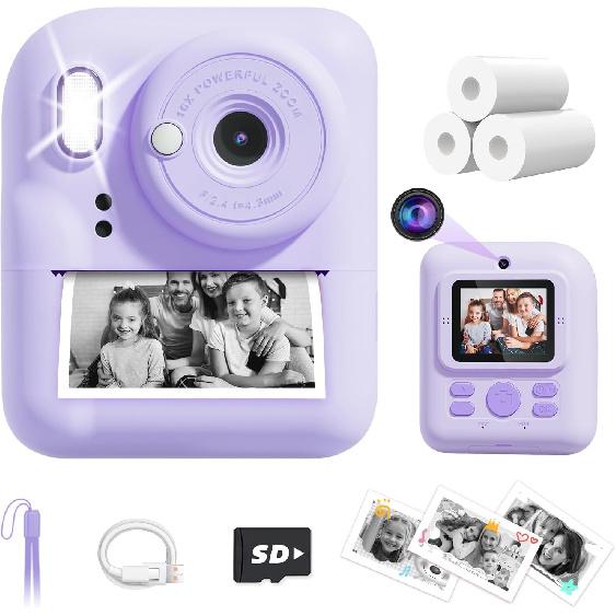 Kids Camera Instant Print, Upgrade Dual-Lens Selfie Digital Camera for Kids, Christmas Birthday Gifts Toys for Boys Girls Age 3-12, HD 1080P Kids