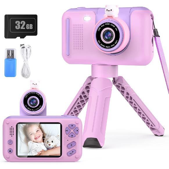 Upgraded Real 1080P Kids Camera with Flip-up Lens for Selfie & Video, 32GB SD Card Included, 2.4" Screen Camera Toy for 4-12 Years Old Girls Boys on