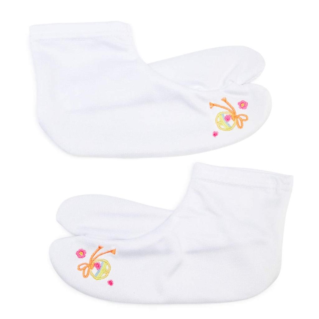 KYOETSU Embroidered Tabi Socks with Japanese Pattern and Tabi Cover Girls' Non-Slip (Sizes 21-22cm, C. Bell)