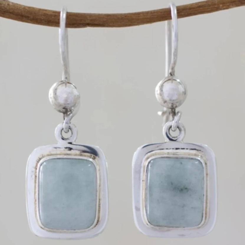 Pendientes Vintage Cuadrados con Incrustaciones de Piedra Verde Creatividad Geométrica Color Plata Pendientes Colgantes para Mujer Joyería
