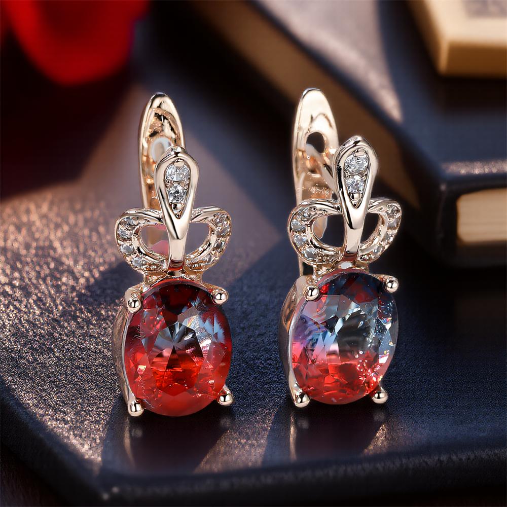Oval Stone Rose Red Blue Crystal Zircon Hoop Earrings For Women Vintage Gold Color Ear Buckle Bridal Wedding Jewelry Party Gifts