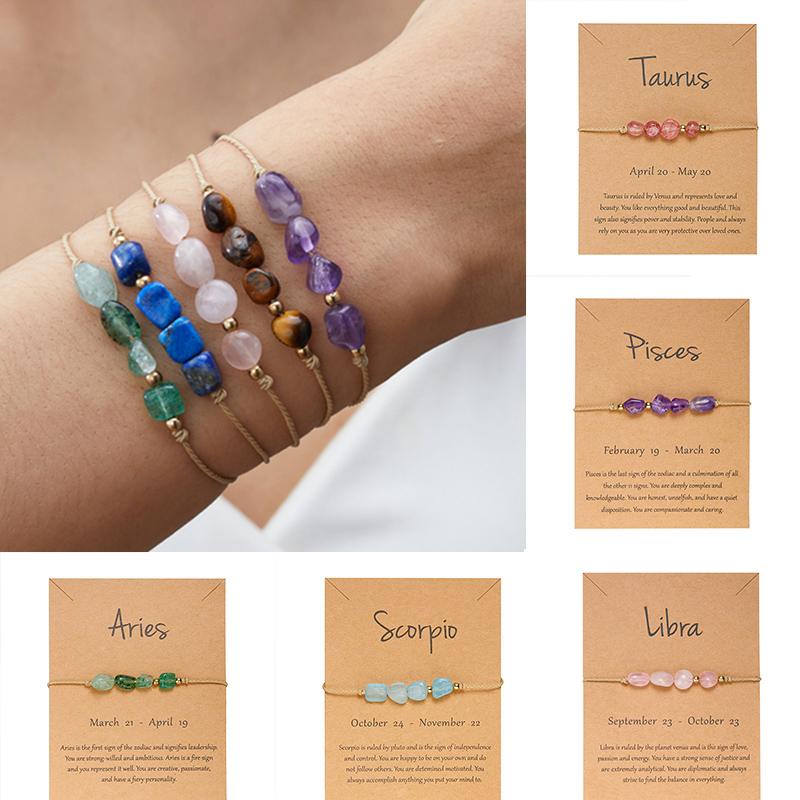 12 Constellation Natural Stone Beads Bracelets for Women Men Handmade Woven Zodiac Signs Bracelets Friendship Jewelry Gifts