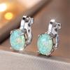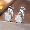 Pendientes de Clip Pequeños Lindos con Piedra Ovalada de Circonita Arcoíris Para Mujeres Pendiente de Compromiso Color Plata Vintage Joyería de Cristal Multicolor