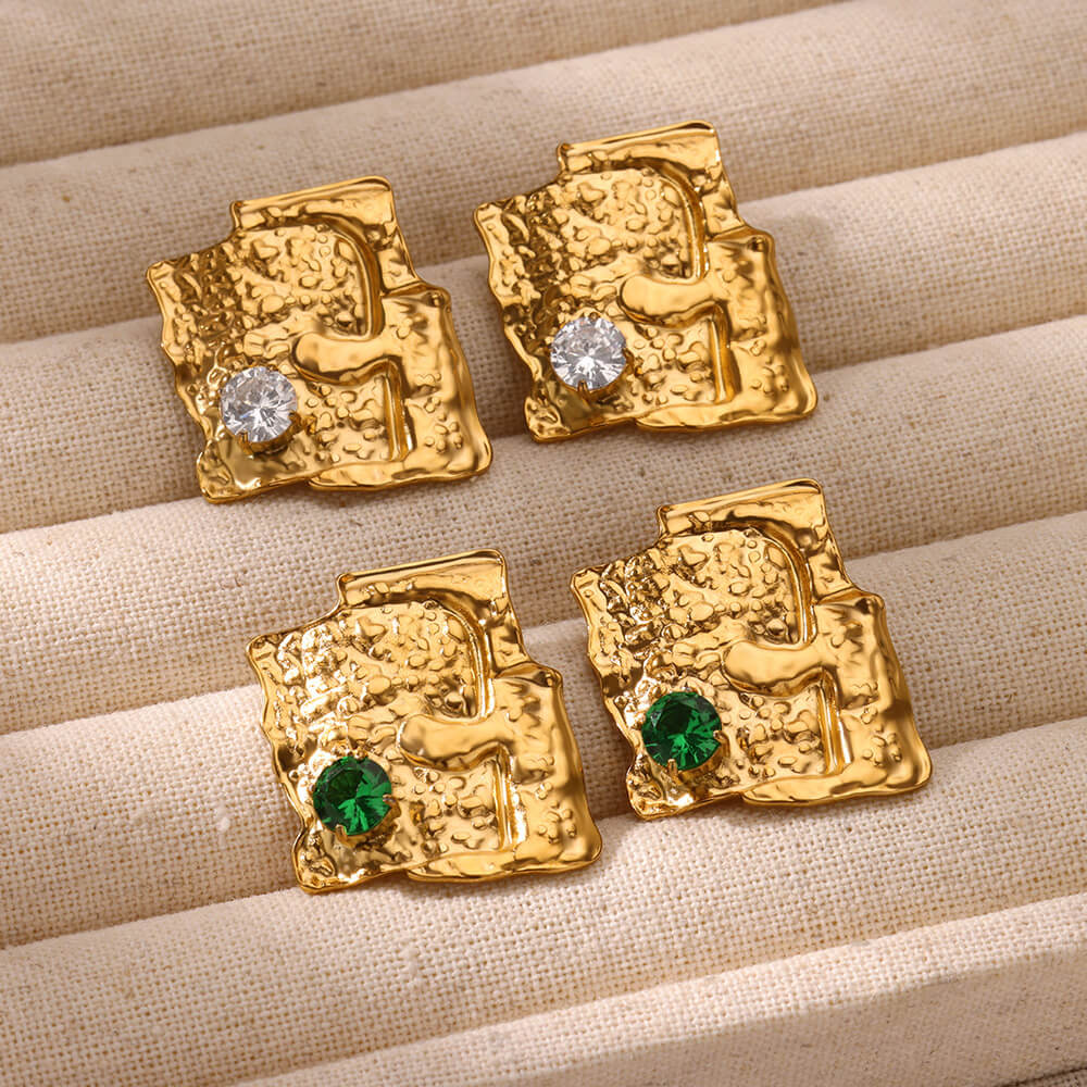 Zircon Irregular Texture Stud Earrings For Women Gold Color Hip Hop Stainless Steel Earring Wedding Christmas Jewelry Gift
