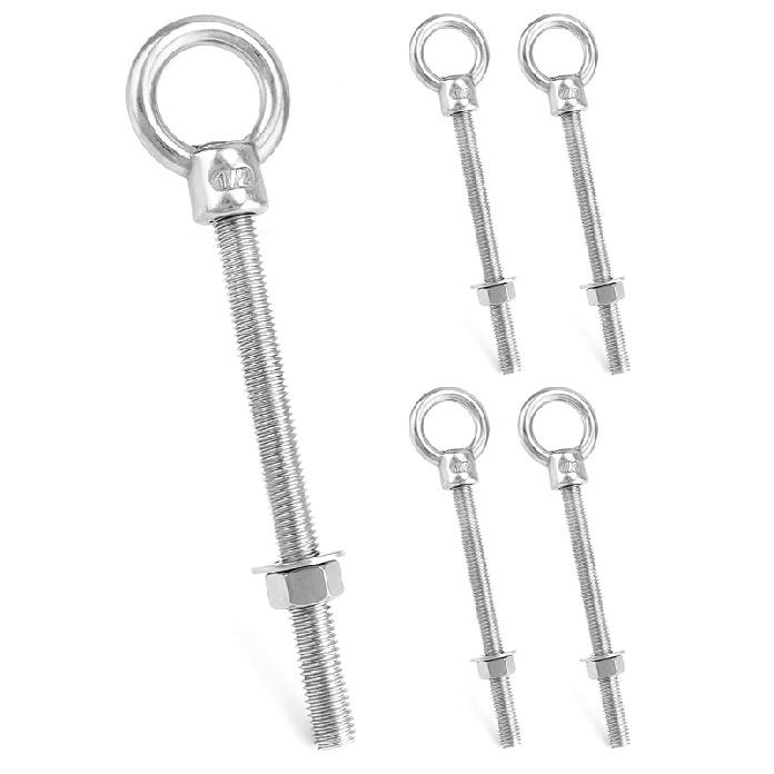 QWORK Machinery Eye Bolt with Shoulder, 5 Pack 1/2"x6" Long 316 Stainless Steel Marine Grade Thread Machinery Shoulder Lifting Ring Eye Bolts