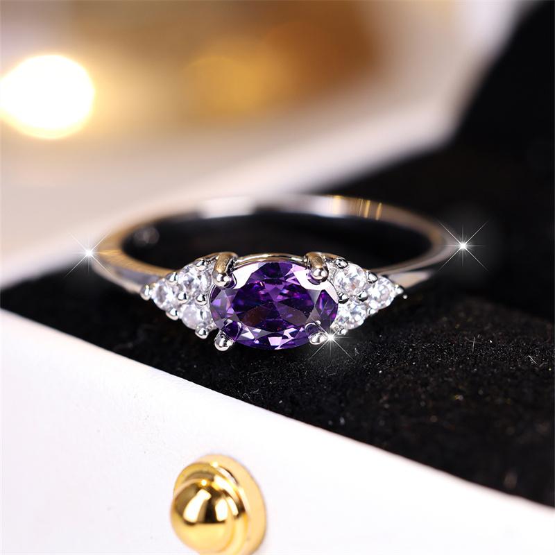 Female Charm Oval Purple White Zircon Minimalist Stacking Thin Rings For Women Party Wedding Bands Mothers Day Jewelry Gifts CZ