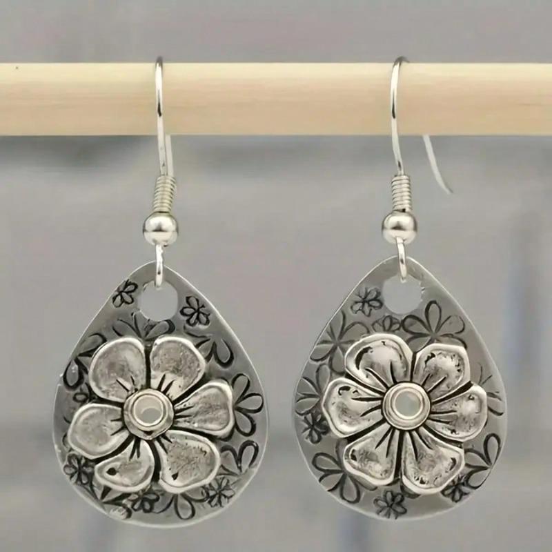 Pendientes de gancho para la oreja de seis hojas de color plateado estilo bohemio para mujer, estilo largo colgante.