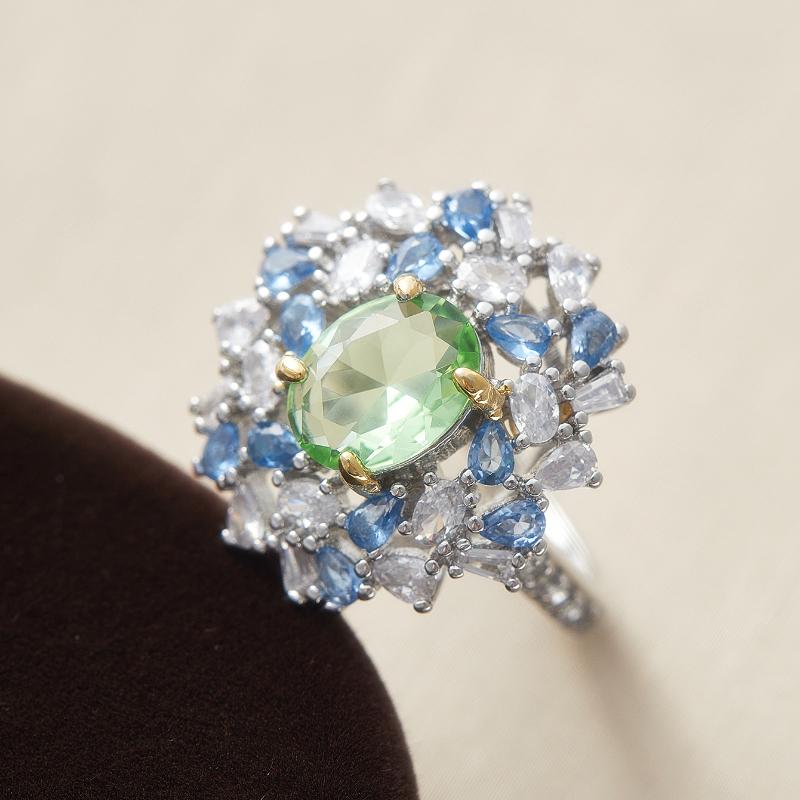 Vintage Exquisite Bright Floral Color Zircon Ring for Women Luxury Timeless Classic Birthday Party Jewelry Gift