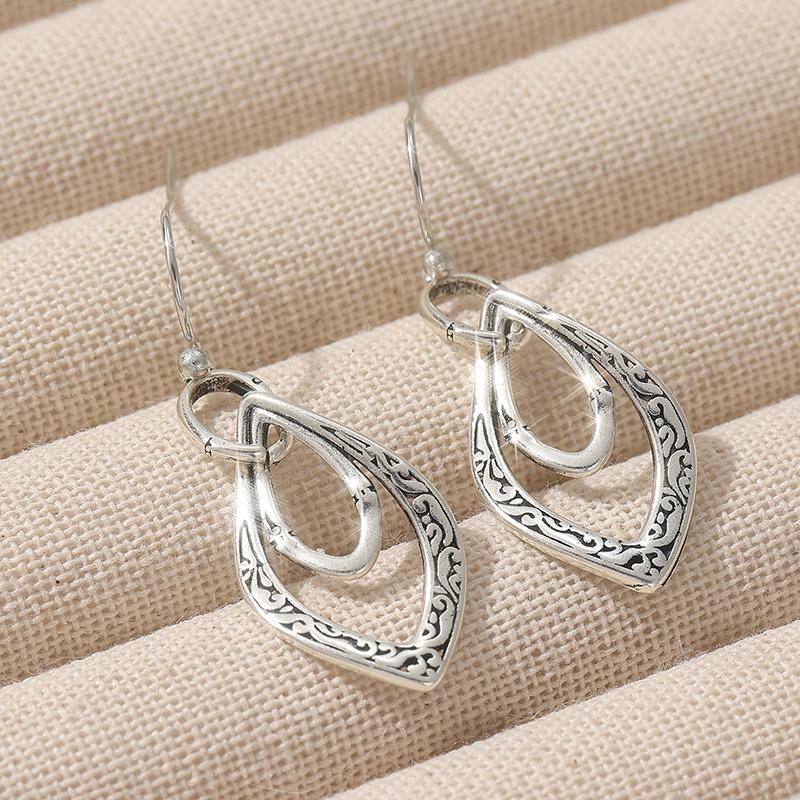 Retro Hollow Carved Silvery Plated Dangle Earrings for Women Geometric Ethnic Irregular Pattern Jewelry Accessories Gift