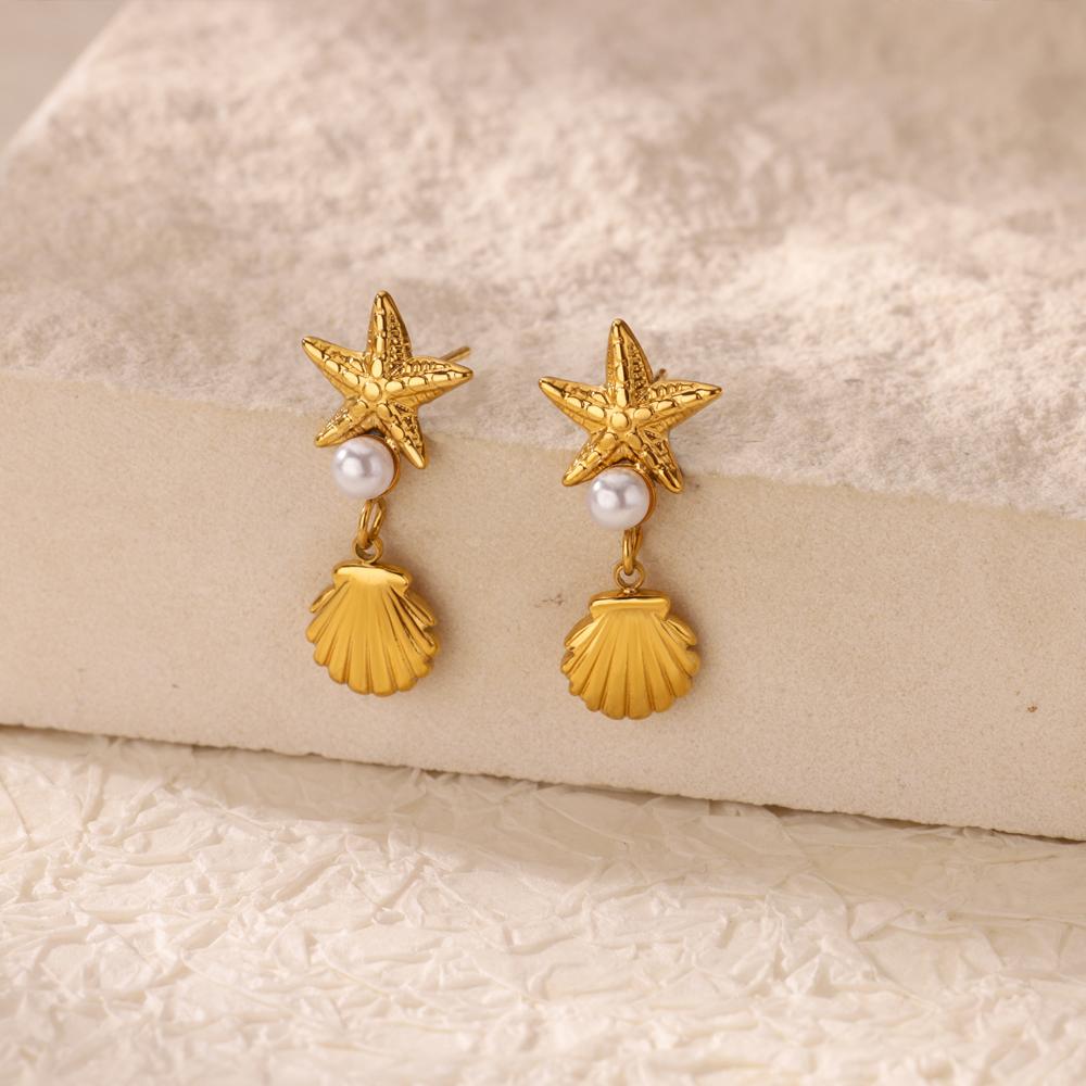 Pearl Starfish Shell Dangle Earrings For Women Gold Color Stainless Steel Earrings Aesthetic Boho Jewelry Summer Beach Gifts