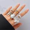 6PC Irregular Exaggerated Metal Flower Open Rings Women Elegant Baroque Imitation Pearl Ring Jewelry Accessories