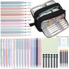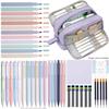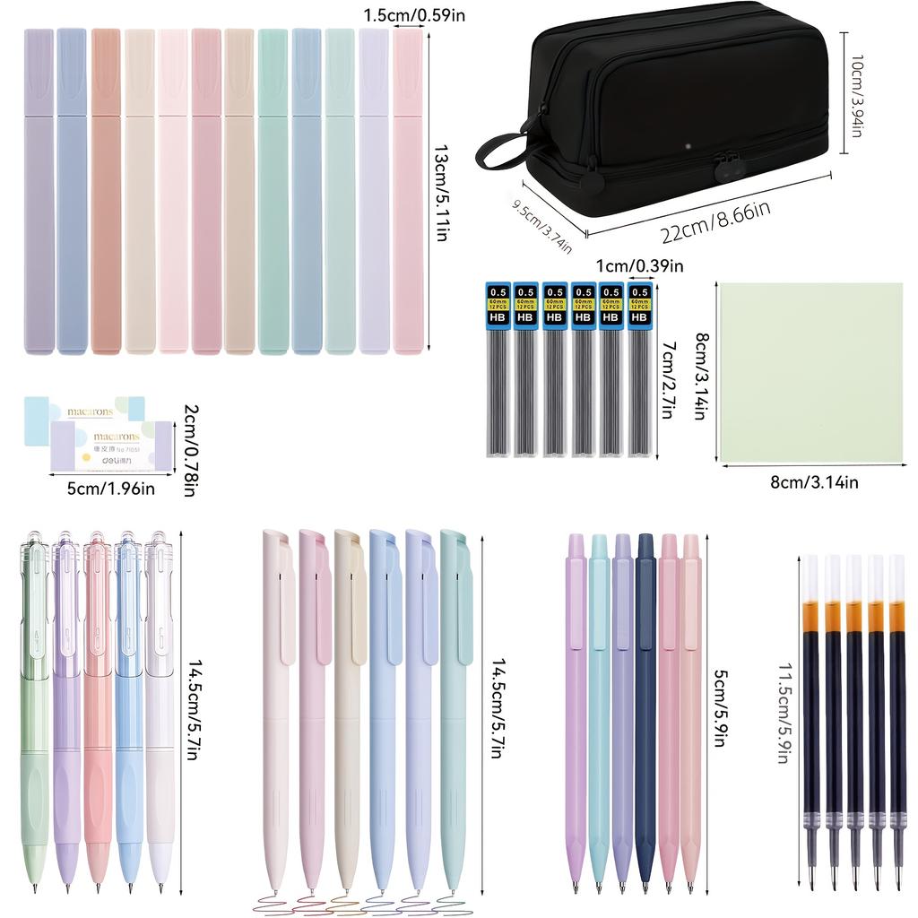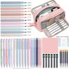 44 pieces of elegant stationery, including a large-capacity pencil case, 12 highlighters, 11 gel pens, and 6 fountain pens.