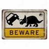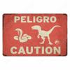 Cuidado con Raptor Señal de Metal Divertida Señal de Reduzca la Velocidad Jardín Hogar Exterior Placa de Zoológico Señal de Advertencia de Dinosaurio Decoración de Pared Vintage