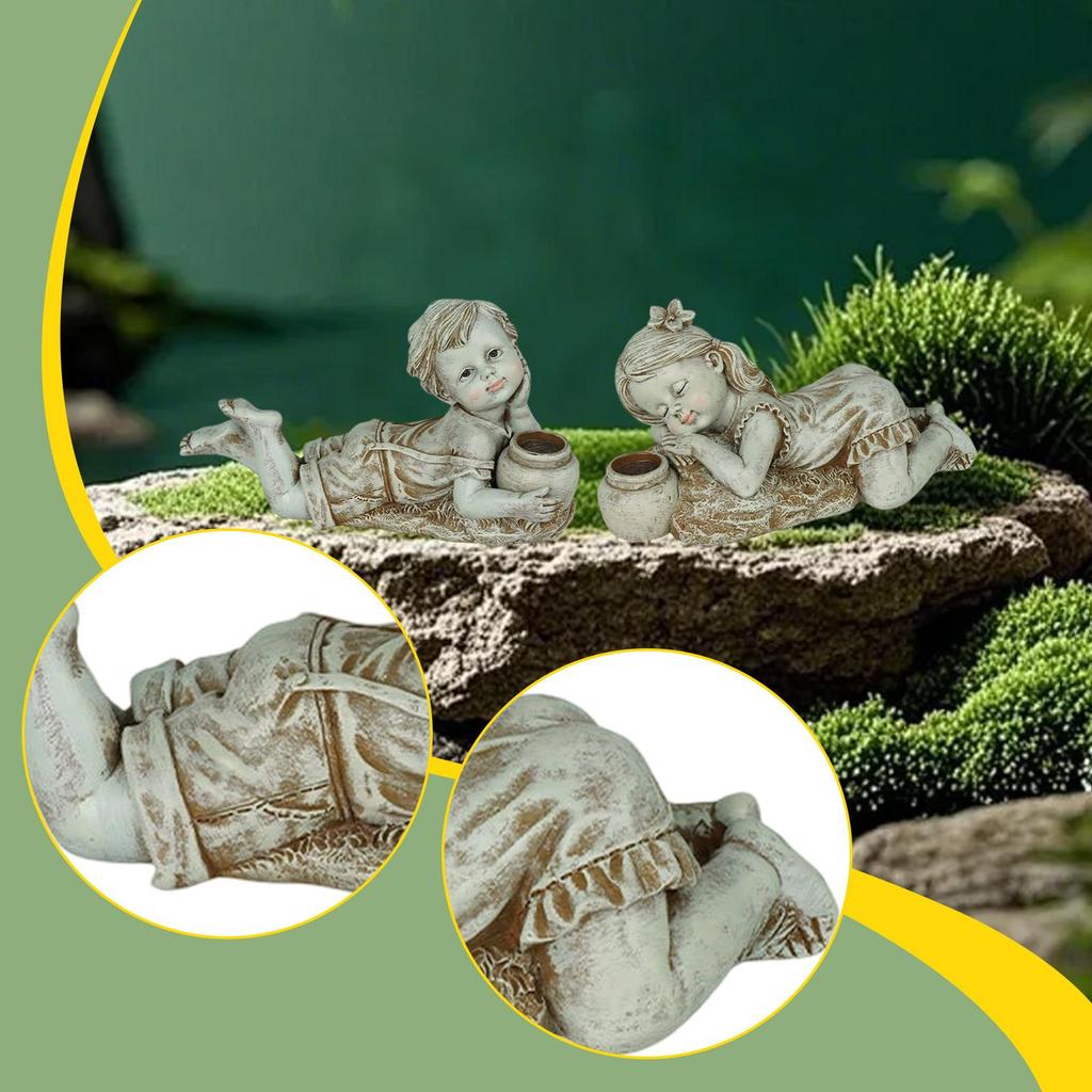 Garden figure child statue garden statue with solar lighting creative lying