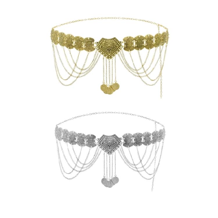 Fringed Coins Chain Belt for Women Hollowed Waist Chain Ethnic Decorative Dress Belt Party Waist Decors Body Jewelry