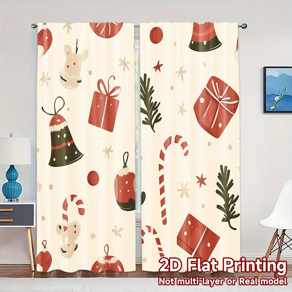2pcs,Curtains Christmas Baubles Candy Canes Gifts (4) Chic Curtains Machine Washable Fabric Curtains Decorations For Home Use
